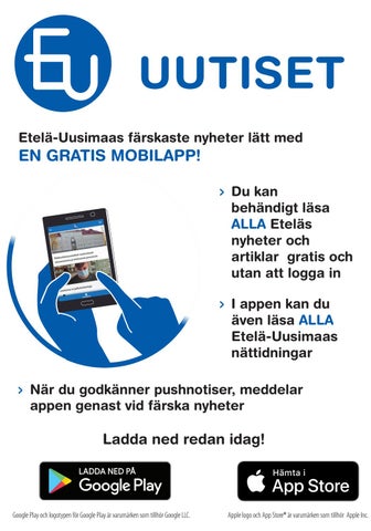 EN GRATIS MOBILAPP! > Du kan behändigt läsa ALLA Eteläs nyheter och artiklar gratis och utan att logga in > I appen kan du även läsa ALLA Etelä-Uusimaas nättidningar > När du godkänner pushnotiser, meddelar appen genast vid färska nyheter