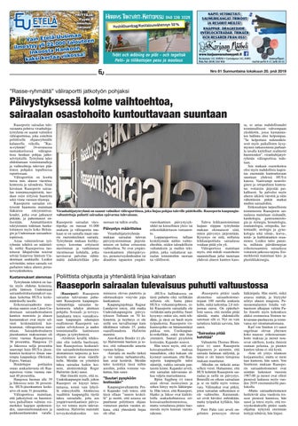Päivystyksessä kolme vaihtoehtoa, sairaalan osastohoito kuntouttavaan suuntaan Raaseporin sairaalan tulevaisuutta pohtiva viranhaltijatyöryhmä on saanut valmiiksi väliraporttinsa, joka esiteltiin poliittiselle ohjausryhmälle kuluneella viikolla. ”Rasse-ryhmän” 24-sivuisessa ruotsinkielisessä väliraportissa luodaan pohjaa jatkoselvityksille. Työryhmä tulee ehdottamaan toimintamalleja ja vaihtoehtoja tulevien päätösten pohjaksi lopullisessa raportissaan. Väliraporttiin on koottu tietoa mm. alueen väestörakenteesta ja taloudesta. Siinä kuvataan Raaseporin sairaalan toimintaympäristöä, tuodaan esiin erityisiä haasteita sekä viime vuosien tilastoja. Raaseporin sairaalan erityisenä haasteena mainitaan lääkärien rekrytointivaikeudet, jotka ovat jatkuneet pitkään, ja pahentuneet entisestään. Ammattilaisten rekrytoinnin todetaan hankaloituneen myös koko Helsingin ja Uudenmaan sairaanhoitopiirissä. Asiaa valmistelevan työryhmän tehtävä on määritellä, mitkä Raaseporissa tuotettavat lähipalvelut toisivat selvää lisäarvoa läntisen Uudenmaan asukkaille. Lisäksi selvitetään, miten sairaala voi parhaiten tukea alueen perusterveydenhoitoa.