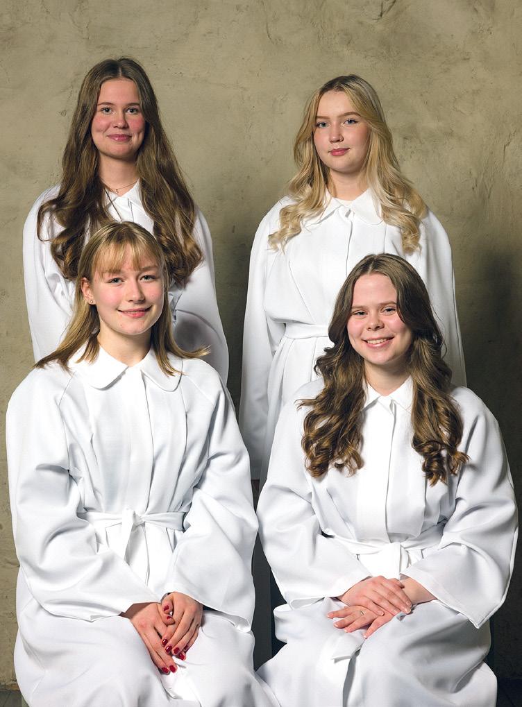 Lucia-ehdokkaat yhteis kuvassa. Takarivissä va semmalla Jessica Grön roos vierellään Catharina Flythström. Edessä Antonia Berlin (vas.) ja Rosanna Sjöstrand. (Kuva: Jonathan Terlinden)