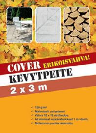 Karjaa: Lepinpellonkatu 5, puh. 020 7415 490, palvelemme: ma–pe 8–18, la 9–15, yritysmyynti ma–pe 6.30–18 Karis: Läppåkersgatan 5, tfn. 020 7415 490, öppettider: må–fre 8–18, lö 9–15, företagsförsäljning må–fre 6.30–18rtv.store Sisustajan syksyyn RTV:ltä Till inredarens höst från RTV VENEIDEN SYYSKUNNOSTUKSEEN! INFÖR BÅTUPPTAGNING! COVER alk./fr. Väri-Kallen Puuöljy/Träolja Ruskea, väritön. Brun, färglös. 76 60 9 l (8,51/l) Falu Vapen Rödfärg Punamultamaali Traditionell rödmyllefärg 3810 10 l (3,81/l) Fasad Classic kuullote/lasyr 8120alk./fr. 9 l (9,02/l) 1 l10 90 Venez Vahashampoo Vaxschampo 1 l Venez Kuomupesu Kapelltvätt 1390 750 ml (17,20/l) Venez Pohjanpesuaine Tvättmedel för bottnet 1290 750 ml (15,87/l) Venez Alumiinipesu Aluminiumtvätt 1190 Sturdy keinuva lepotuoli gungande hängstol 269 00 kpl/st. Ulkotulisija Utomhus eldstad Halkaisija/Omkrets 88 cm. 14900 kpl/st. Synteettinen, musta työkäsine Syntetisk, svart arbetshandske Koot 7–11. Rakennuksille, teollisuuteen ja huoltotöihin. För byggen, industrin och underhållsarbeten. 295 pari ett par -30% KAIKKI PRESSUT ALLA PRESENNINGAR