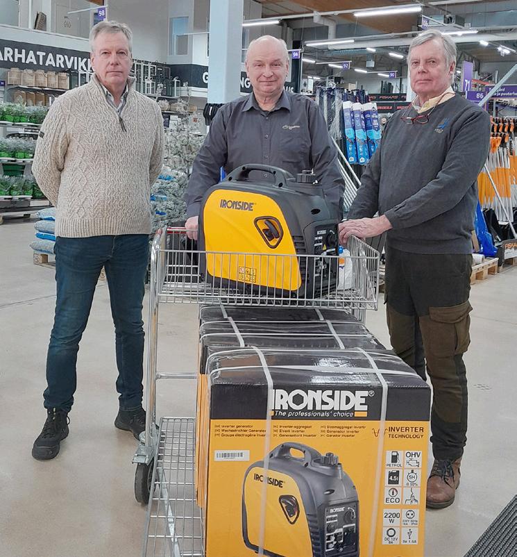 Karjaan Rotary-klubi lahjoittaa uusia generaattoreita Ukrainaan. Kuvassa vasemmalta puheenjohtaja Ralf Lindén sekä jäsenet Kaj Björklöf ja Nils-Gustav Höglund, joka aktivoitui ukrainalaisten pakolaisten auttamisessa jo viime keväänä.
