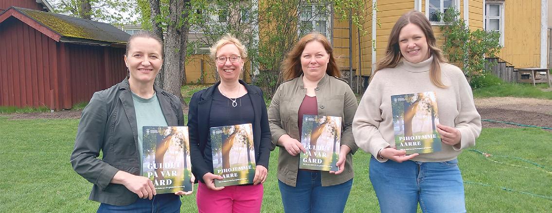 Raasepori pyrkii herättämään mielenkiintoa ja lisäämään tietoa pihapuiden merkityksestä uudella julkaisulla ja kampanjalla. Puutiimin jäsenet vasemmalta lukien kaupunginarkkitehti Johanna Backas, ympäristöpäällikkö Maria Eriksson, puistopäällikkö Maria Eriksson ja kehityssuunnittelija Julia Ingo. (Kuva: Raaseporin kaupunki) to-osakeyhtiöille ja myöhemmin tänä vuonna kampanja tulee näkymään kaupunkiku-