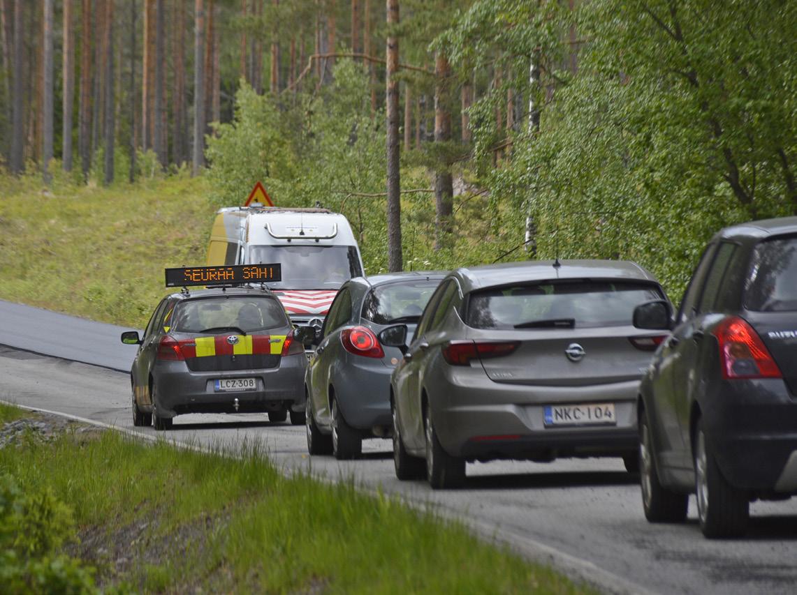 Jyrki Takkulalla ei ole juurikaan hyvää sanottavaa autoilijoiden käyttäytymisestä. Ajonopeudet pysyvät kurissa maantiellä 104 työmaan kohdalla saattoauton perässä.