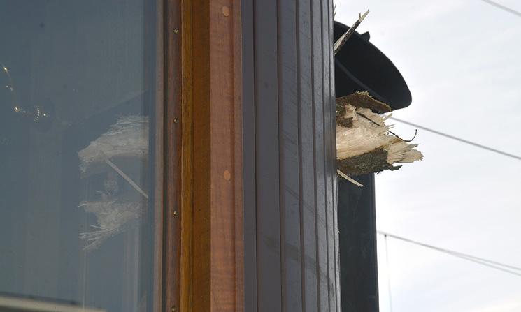 Rikkoutuneet ikkunat ja naarmut kertoivat haaverista.
