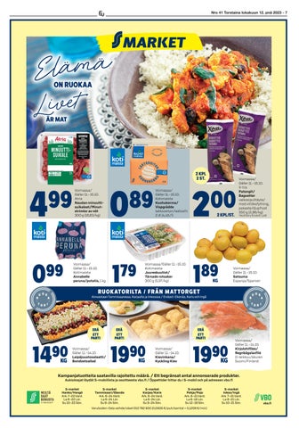 s. 7 Nro 41 Torstaina 12.10.2023 1979 2023 ÖLJYLÄMMITIN PROF 2000 W 9 LAMELLIA Energiaa säästävä ja turvallinen lisälämmitin, jota on helppo siirtää pyörien avulla. Säädettävä termostaatti. Teho 2000 W. Takuuaika 24 kk. KONVEKTORILÄMMITIN GOODIY 750/1250/2000 W Vapaasti ja tukevasti seisova lämmitin lisälämmitykseen esimerkiksi toimistoon, terassille tai mökille. Kolme lämmitystehoa: 750 W, 1250 W ja 2000 W. Kiertoilmalämmitin lämmittää tehokkaasti ja lämmitysaluetta voidaan säätää. Nykyaikaista rautakauppaa perinteitä kunnioittaen 5990 2495 EKENÄS - TAMMISAARI HANKO-HANGÖ KAR IS -KAR JAA POPSI TARJOUKSET VOIMASSA / ERBJUDANDEN I KRAFT TO-SU/SÖ 12.-15.10. ELLEI TOISIN MAINITA / OM INTE ANNAT NÄMNS. Tavallista parempi ruokakauppa! En bättre matbutik! PERUNALASTUT POTATISCHIPS 300 g (6,63/kg) Rautatienkatu/Järnvägsgatan 19 10600 TAMMISAARI/EKENÄS puh./tel. 019 212 6500 ark./vard. 7-21, la/lö 8-20, su/sö 10-20 Raaseporintie/Raseborgsvägen 14 10650 TAMMISAARI/EKENÄS puh./tel. 0207 630 810 ark./vard. 7-21, la/lö 8-18, su/sö 12-18 Verkkokauppa: Tilaa ja Nouda -palvelu Ratakatu/Bangatan 59 10300 KARJAA/KARIS puh./tel. 0207 870 150 ark./vard. 7-22, la/lö 8-22, su/sö 9-21 Verkkokauppa: Tilaa ja Nouda -palvelu Revellinkatu/Revellsgatan 2 10900 HANKO/HANGÖ puh./tel. 0207 871 680 ark./vard. 7-21, la/lö 8-21, su/sö 10-20 Verkkokauppa: Tilaa ja Nouda -palvelu 595 2 49 1 69 TALON WIENERLEIKE HUSETS WIENERSCHNITZEL ATRIA TAKUUMUREAT NAUDAN ULKOFILEEPIHVIT GARANTERAT MÖRA YTTERFILÉBIFFAR AV NÖT KPL ST. KG KG Espanja/Spanien PALVELUTISKILTÄ FRÅN BETJÄNINGSDISKEN voimassa / i kraft to-la/lö 12.-14.10. Ilman Plussa-korttia/ utan Plussa -kort 1,19 prk/brk (6,80/kg) Ilman Plussa-korttia/ utan Plussa -kort 2,49 tlk/brk Ilman Plussa-korttia/ utan Plussa -kort 2,35 ps (14,69-13,06/kg) Ilman Plussa-korttia/ utan Plussa -kort 6,29 kpl/st. (10,06-8,39/kg) Ilman Plussa-korttia/ utan Plussa -kort 2,65 ps (8,83/kg) 2 49 6 95 KPL ST. KG 4.- 4.- 5.- 1 99 499 1995 KG KG PS KG 4 PRK/BRK 2 TLK/BRK 3 PS -15 % Plussaetu/förmån -20 % Plussaetu/förmån FAZER ENJOY MAKEISPUSSIT GODISPÅSAR 160-180 g (10,42-9,26/kg) VALIO HYVÄ SUOMALAINEN ARKI JUUSTOPALAT OSTBITAR 625-750 g (7,98-6,65/kg) VALIO PROFEEL PROTEIINIRAHKAT PROTEINKVARG 175 g (5,71/kg) VALIO GEFILUS MEHUT SAFTER 1 l (2,00/l) MAKSAMAKKARA DELIKATESSLEVERKORV 500 g (4,98/kg) KIVIKYLÄN PORSAAN KASSLER KASSLER AV GRIS n./ca 1-2 kg n./ca 1,5 kg LUOMUBANAANIT EKOLOGISKA BANANER Ecuador TUORE KUHAFILEE FÄRSK GÖSFILÉ Viro/Estland, säävaraus/väderreservation TUORE KIRJOLOHI FÄRSK FORELL Raj. 2 kalaa/talous Begr. 2 fiskar/hushåll 995 899 2495 KG SUOMI FINLAND ERÄ ett PARTI ERÄ ett PARTI ERÄ ett PARTI ERÄ ett PARTI ERÄ ett PARTI SUOMI FINLAND SUOMI FINLAND -19 % Plussaetu/förmån ERÄ ett PARTI -29 % Plussaetu/förmån -24 % Plussaetu/förmån luvn.fi LIVSKRAFT FÖR ÄLDRE Ta bilagan till vara från mitten av tidningen ELINVOIMAA IKÄÄNTYNEILLE Ota liite talteen lehden keskeltä