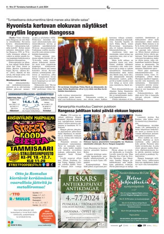 Torstaisi n ja sunnuntaisi n ilmestyvä puolueeton paikallisleht i (Hanko Inkoo Karjaa, Pohja, Tammisaari) Painos 23.000 kpl