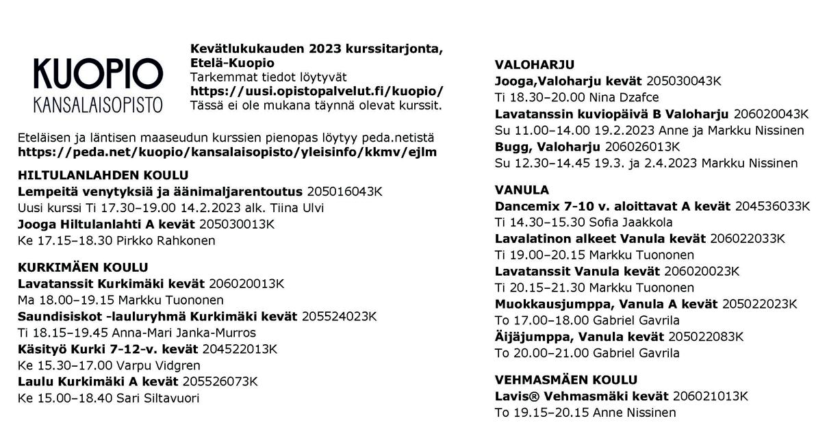 Muutokset mahdollisia – tarkista aika ja paikka!