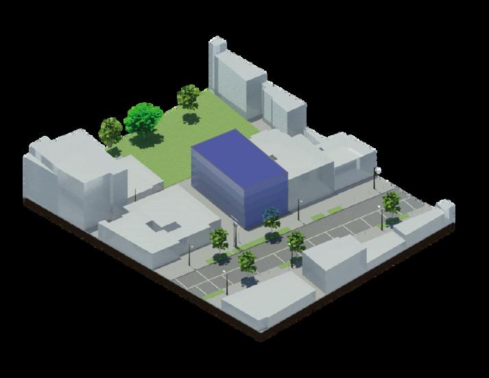 Fachada sur suroccidental con mayor recepción de luz solar por más horas al día, la separación del proyecto con el lote ubicado al occidente propicia que el edificio reciba más incidenc a solar, el contexto no genera sombras significativas sobre el lote.