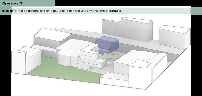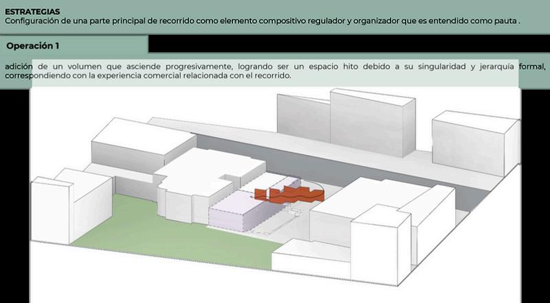 Esta hipótesis adopta principios de orden que organizan y unifican el proyecto. El sistema compositivo se desarrolla a partir de dos estrategias.