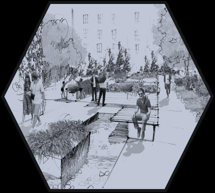 Par finalizar se propone Hexágonos dónde se va a desarrollar las zona social . Siendo estos integrados al ambiente acompañando posteriormente de vegetación.