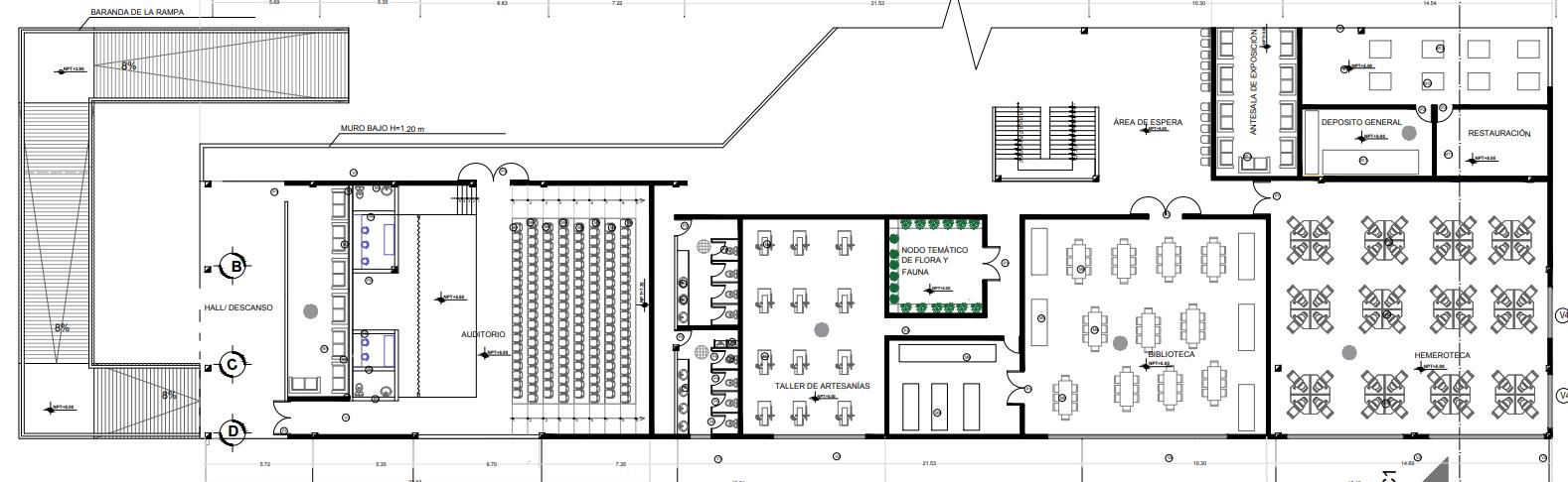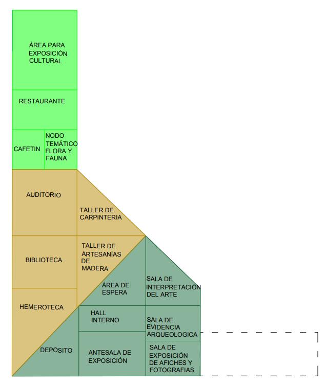 Esto nos conlleva a tener el logro de proyectar un módulo arquitectónico en este caso siendo un Centro Cultural cómo bien se sabe este es un centro que también puede servir como medio en el cual un determinado pensador exprese sus puntos de vista o un artista exponga su arte. En general estos lugares tienen la finalidad de hacer accesible la cultura para un público amplio, sobre todo en aquellas variantes de la misma que sean de menor conocimiento o poco populares. A continuación presentaremos el centro cultural diseñado por las proyectistas Doble E , tenemos el paso a paso de lo que fue la investigación , anteproyecto y proyecto en función . Así mismo se hace la intervención de vías no asfaltadas y la propuesta de nuestro sector que viene a ser un puerto maderero con Parques zonales