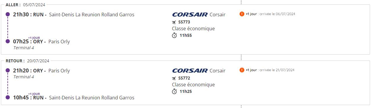 - Le vol Corsair Réunion/Orly/Réunion autarifd’aujourd’huisujetà modification jusqu’à réservation définitive