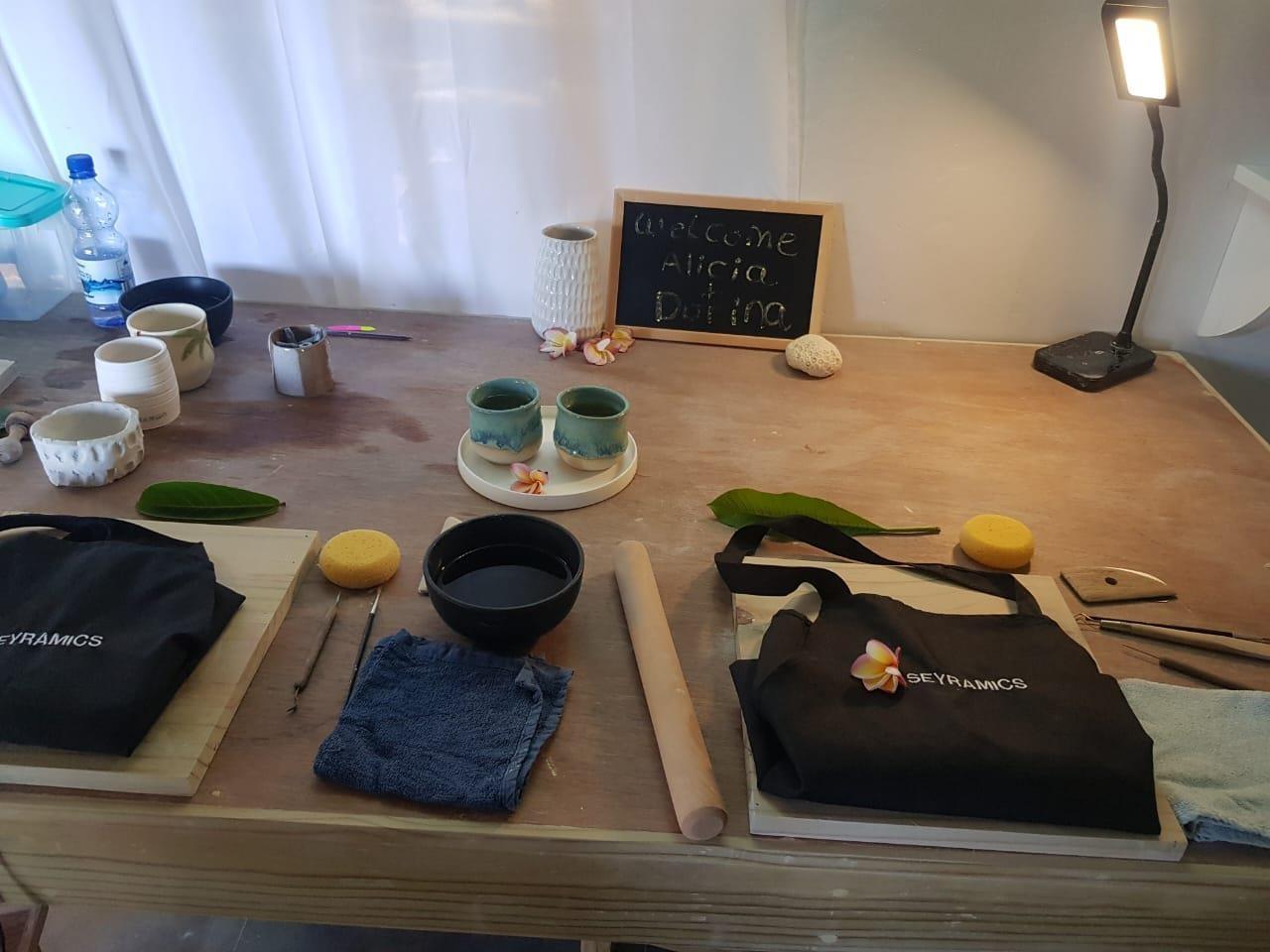 À votre arrivée, vous serez accueilli avec un verre de thé frais à la citronnelle, suivi d’une petite visite du studio de près avec l'artiste Zara Albert et la découverte du processus de poterie. Par la suite, un atelier de construction manuelle d'une heure vous attend ; vous aurez l'occasion de réaliser une petite assiette en forme de feuille ou d'autres pièces similaires qui vous seront expédiées une fois terminées. Il y a un studio-boutique où vous pourrez acheter des œuvres d’art toutes faites.