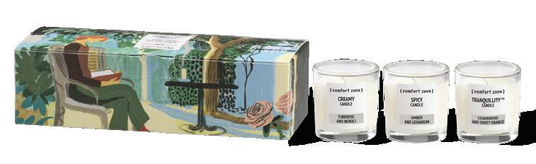 Encased in a luxurious box, the set contains Creamy Candle 35g, Spicy Candle 35g, and Tranquillity Candle 35g.