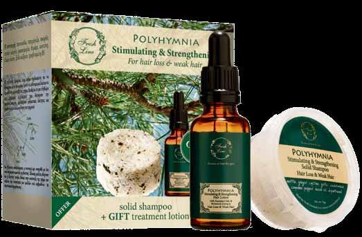 δραστικά φυτικά εκχυλίσματα, συνδυασμένα με πολύτιμες για την υγεία και την ανάπτυξη των μαλλιών