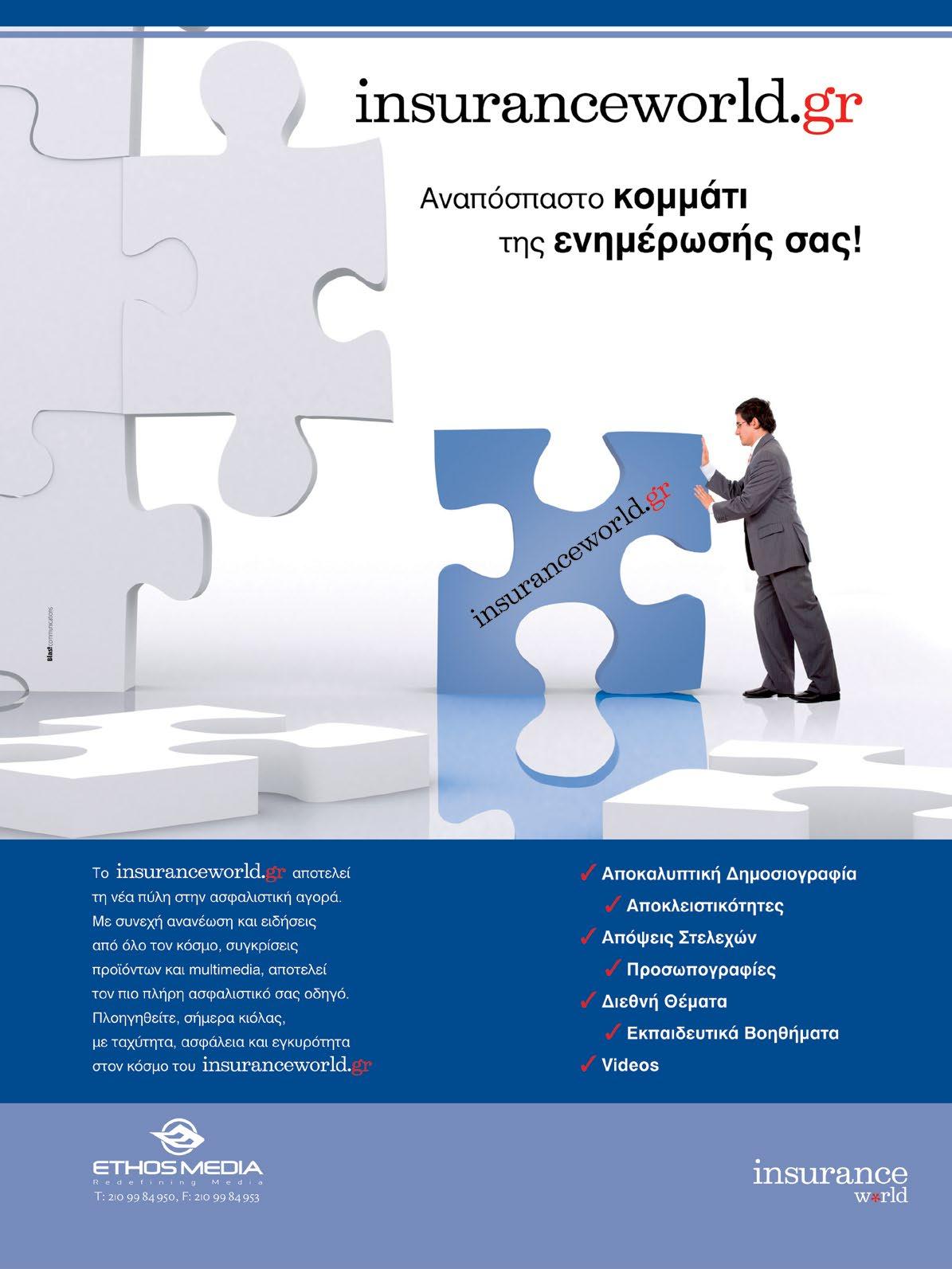 Ιδιοκτησία ETHOS MEDIA S.A. Θεσσαλίας 29, 174 56 Άλιμος T:210 9984950, Φ:210 9984953 E:insuranceworld@ethosmedia.eu www.insuranceworld.gr