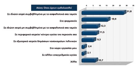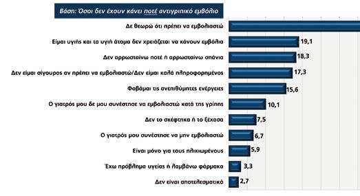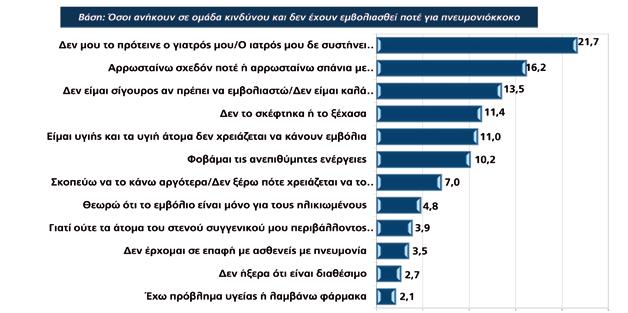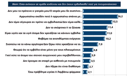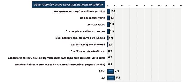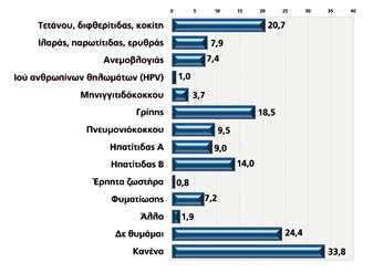 σε χώρους παροχής υπηρεσιών υγείας (5,8%) και τα άτομα που έχουν διαγνωστεί με καρδιαγγειακή νόσο (4%). Ως προς τις πρακτικές εμβολιασμού, μόνο το 15,8% των ερωτηθέντων δήλωσε