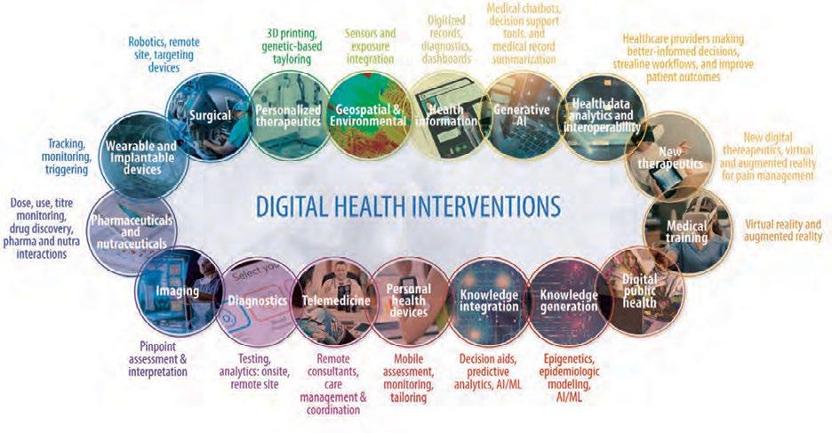 It will also be characterized by rapid technological advances not previously seen in a generation. Figure 18 shows the key areas of expansion already underway, recognizing that these trends represent only a glimpse of the mushrooming field of digital technology in health. One of the main areas of rapid advancement, is in generative artificial intelligence, or genAI, described in Box 1.