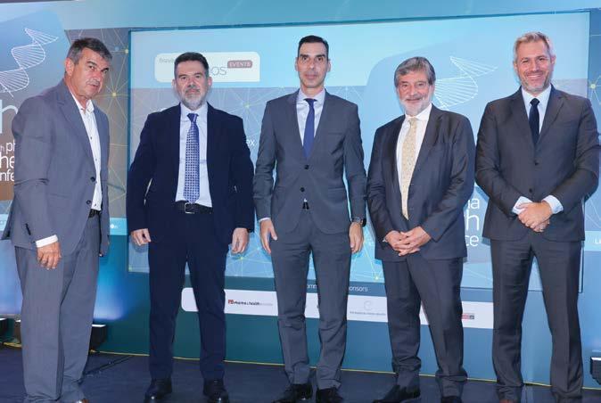 Από αριστερά: Αιμίλιος Νεγκής, Δημοσιογράφος (Συντονιστής), Σπύρος Σαπουνάς MD, PhD, Ενδοκρινολόγος-Διαβητολόγος, Πρόεδρος ΔΣ, ΕΟΦ, Ελευθερία Τοκατλίδη, Διευθύνουσα Σύμβουλος, ΙΦΕΤ, Γεώργιος Κ. Χαραλάμπους MD, MSc, PhD, Πρόεδρος, Εθνικό Κέντρο Άμεσης Βοήθειας (ΕΚΑΒ), Άρης Αποστόλου, Πρόεδρος, Εθνική Κεντρική Αρχή Προμηθειών Υγείας (ΕΚΑΠΥ).