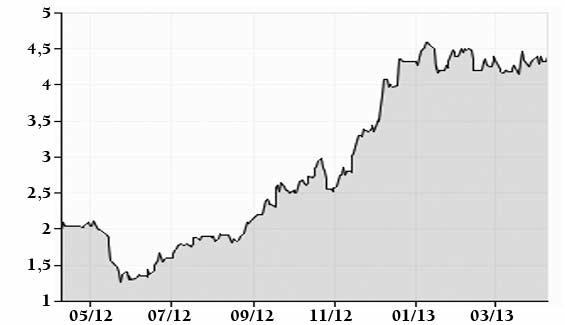 Αρ. Μετοχών (.000)158.962 Χρ. Αξία (σε εκατ. ευρώ)319,51 Μέσος Ημ. Όγκος Συν.594.301 Συντελεστής Beta0,94 ΣΤΑΤΙΣΤΙΚΑΣΤΟΙΧΕΙΑ Μέγ. 52 εβδ.2,34 ευρώ Χαμ. 52 εβδ.0,66 ευρώ Απόδ. 1-Μ-2,43% Απόδ. 6-Μ36,73% Απόδ. 12-Μ206,87% Πηγή: Η Εταιρία, VRS.