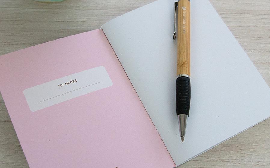 Our notebooks, pads and journals are made in Australia from FSC Certified, 100% post-consumer recycled paper. All of our stationery is carbon neutral and plastic-free. Min order notebooks/journals/pads is 3 per design.