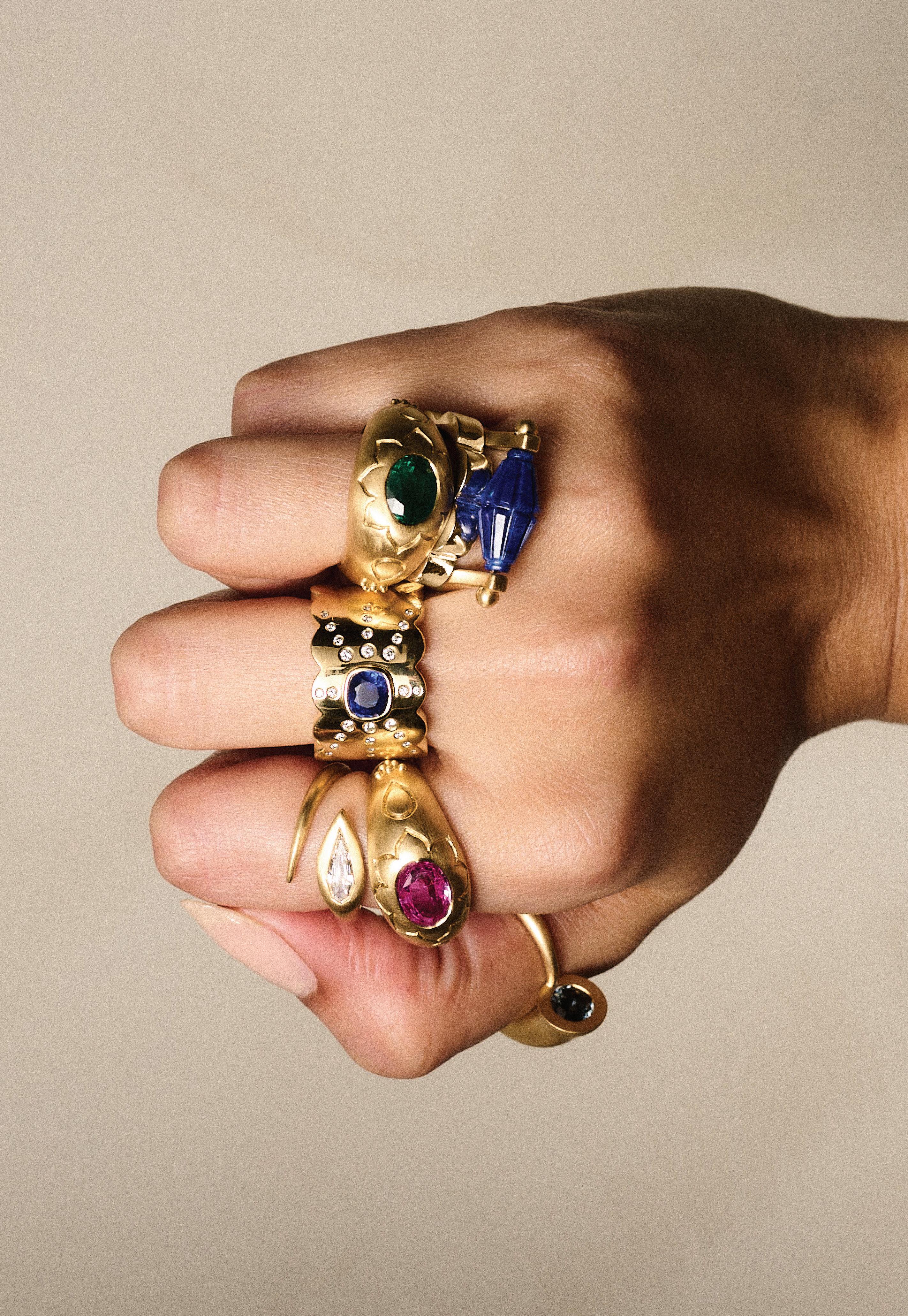JHAROKHA CIGAR BANDS Sapphire, Emerald, VVS Diamonds & 18k Gold