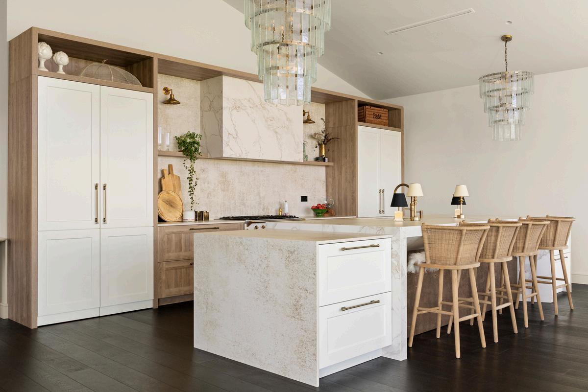 Everyzoneinthekitchenspacewas carefullycuratedtocreateajourney throughouttheday Fromtheabundant storage,totheconcealedmorningcoffee andbreakfastpantry,movingto professionalstandardcookingandwine storage Everyareahasbeendesigned withpurpose,cocoonedinluxury.