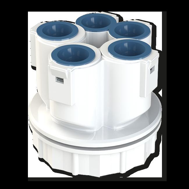 Kombimuffen fra ETMAN er en skapmuffe med innføringer til flere rør. Her er det plass til 3x16/20mm og 2x16mm rør. Skapmuffen passer i 50mm hull.