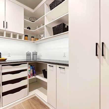 Kathryn: The showroom allows us to share with clients the various wood finishes that are available, styles and colors can be discussed, and accessories for the pantry, closet, or garage, along with our