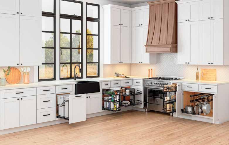 Convenient accessories like jewelry drawers, fold-out ironing boards, tilt-out hampers, drawer organizers, and pullout belt racks are among the many options that bring more order to the closet and help you easily find items.