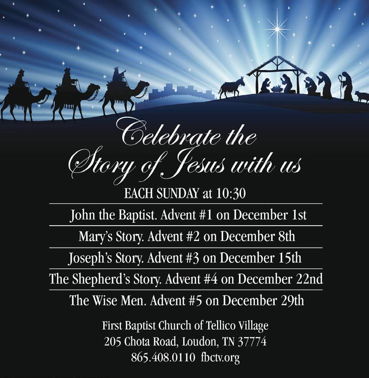 So, this holiday season, as we are busy with our everyday lives, take time to slow down and remember what’s important. You are important to us. We at East Tennessee’s Mountain Views have come to appreciate all of our readers and advertisers, many of whom have become great friends. We wish all of you and your families a blessed Christmas and a safe and prosperous New Year. We look forward to continuing to serve our community by highlighting all the best the area has to offer while making new friends along the way. Enjoy the holiday season.