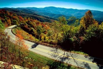 the clouds and catch a glimpse of stunning fall scenery of the Great Smoky Mountains and the Tennessee River Valley. The Skyway is known in motorcycling circles for its long, sweeping corners, making its mile-high vistas and brilliant views the perfect fall background.