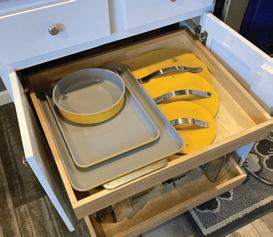 Crock-pots, stock pots, air fryers, mixers, bread makers, and more… anything can be stored on our heavy-duty gliding drawers - they support up to 100 pounds! We can also install vertical dividers to make cookie sheets, cutting boards, cake pans, cookware lids, and casserole dishes a breeze to retrieve and put away.