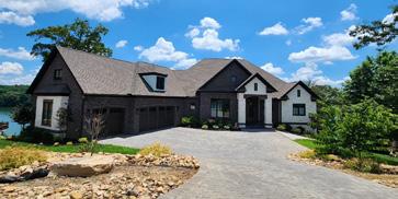 Built in 2023, this contemporary custom lakeside home offers breathtaking views and a striking architectural style. The residence showcases vast ceilings, graceful archways, and elegant hardwood flooring throughout. Upon entering the main floor, you are welcomed by an inviting foyer, a magnificent Great Room featuring a stone fireplace that extends from floor to ceiling and expansive windows facing the lake. The gourmet kitchen is equipped with a French door oven, a double-drawer dishwasher, a generous island with seating and a dining room that offers scenic lake views. A favorite area for the owners is the coffee/wet bar. The primary suite on the main level offers incredible lake views, a spa-like bathroom with a roomy walk-in shower, standalone tub and dual sinks with extended vanity. A screened porch expands the living area with panoramic views of the lake. The basement is designed for entertaining, featuring two guest bedrooms, two full baths and a cozy family room with a wet bar/kitchenette. An inspiring music room adds uniqueness to the property. The outdoor covered patio is ideal for social gatherings and is just steps from the boathouse. With its superior craftsmanship, entertainment-friendly layout and prime lakeside setting, this home is indeed a one-of-a-kind masterpiece!