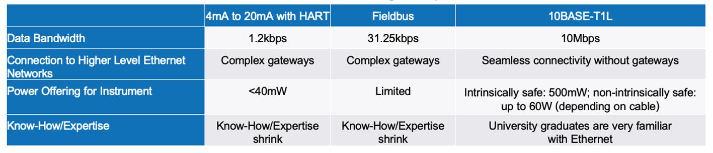 10BASE T1L provides a relatively robust communication standard for process automation that offers numerous advantages over conventional 4mA to 20mA applications, including the possibility of reusing the existing infrastructure.