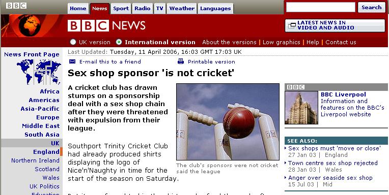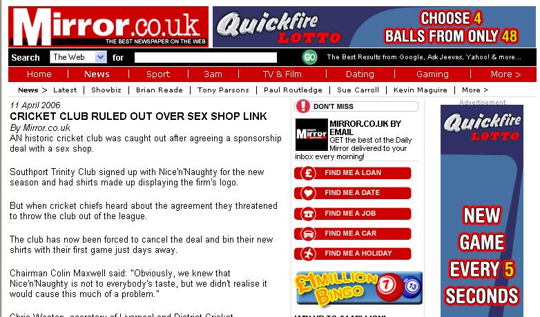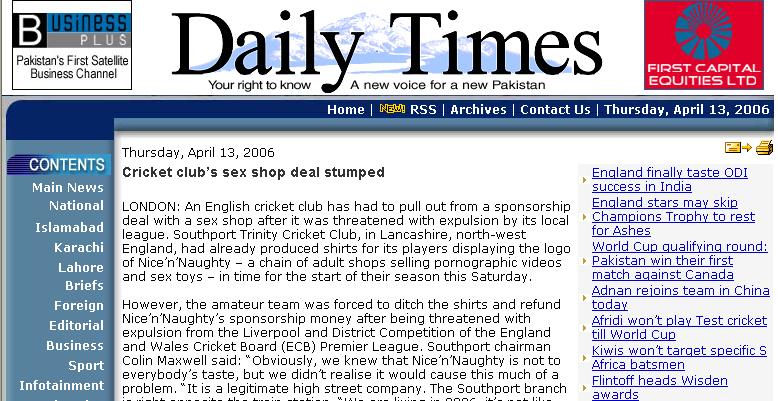 The story went on to appear on the websites of the BBC, BBC Sport, The Telegraph, The Sun, The Mirror, and being cricket-related, it was also picked up by websites in countries which play the sport, including CNN of India, Pakistan’s Daily Times, South Africa’s Mercury, and New Zealand’s Newswire. As a footnote, Simon Prescott informed the club that despite the sponsorship deal being cancelled, it could still keep the £1,000.