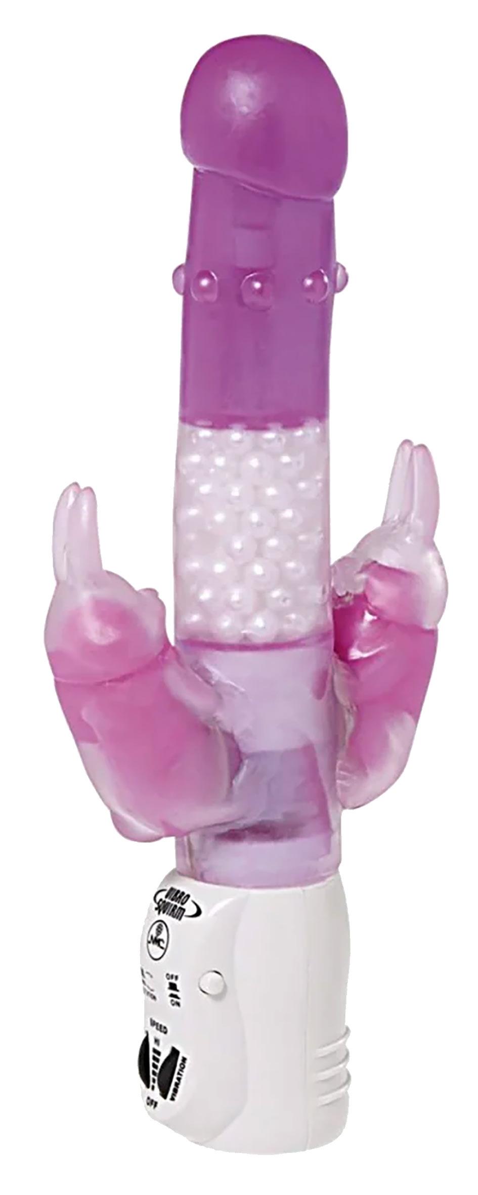 The star of the show was thought to be the Pearl Diver Double Bunny. Standing 8” tall, the device featured a rotating shaft and two rabbit-eared clit stims. The packaging proudly proclaimed: “Twin bunny vibes for maximum pleasure in both the arse & clitoris.”