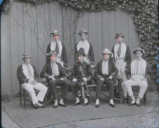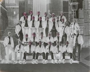 Not only did colour add depth and brightness to photographs, but for Eton College it was an important addition in order to capture the colours of the house teams. House colours have always been a tradition of pride and loyalty to one’s house, so the inability of photography to capture these colours was a great loss. One example in our collection of the addition of colour to house photographs is PA-A.125:14-2013. This photograph does not include names and bears only a date of 1909. Fortunately, the boys’ sport team uniforms have been painted with their black and red stripes. This allows us to quite confidently say this was the house football team of A.A. Somerville in 1909.