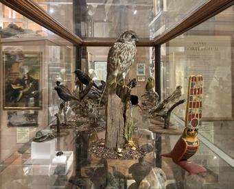 The remnant of the Thackeray birds displayed in a case designed by Prince Albert for the Great Exhibition in 1851