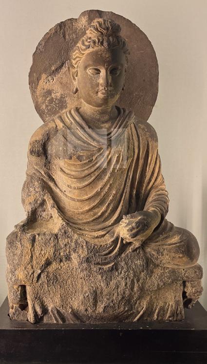 Gandhara grey schist figure of seated Buddha (ECM.6521-2017)