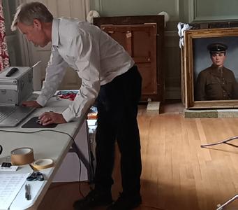 Last year more than 1,200 works of art were moved on over 200 occasions in association with building work, exhibitions and redisplays. More than 300 items from the Provost’s Lodge alone were packed and removed ahead of extensive refurbishment works. As paintings normally hung high on walls of the Lodge came down, it was possible to commission professional photography of many works of art for the first time. These images will enhance our online catalogue records, making the collections more accessible. Moving the paintings also allowed us to investigate the backs of the works, which revealed some new information.
