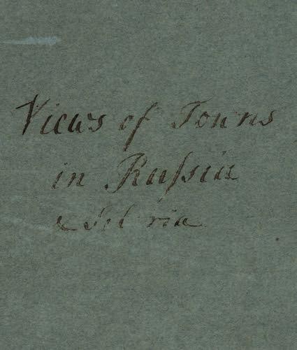 The search for the early 19th-century owner of this volume began in the British Library. There, Grigor-Taylor identified manuscripts of Britons in Russia dating between 176970 (when the engravings were published) and 1807 (the date of the watermark of the blue English paper used for the cover). Focusing on those who could have bought the engravings in St Petersburg, and who may have had a particular interest in these localities and routes, she ultimately narrowed the search to Samuel Bentham (1757-1831).