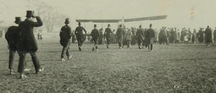 Sadly, we do not have a photograph in the Archives capturing the landings of Napier and Acland, but we do have an image of an aeroplane making a forced landing in 1917 on what appears to be South Meadow, taken by a boy here at the time.