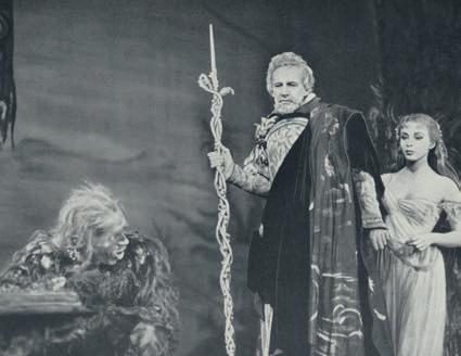 In Helpmann’s production they were proclaimed as the new generation who would repudiate the sins and neglect of their fathers in restoring order and prosperity to Milan and Naples. Claire Bloom and John Neville made the most of this opportunity and both gave memorable performances.