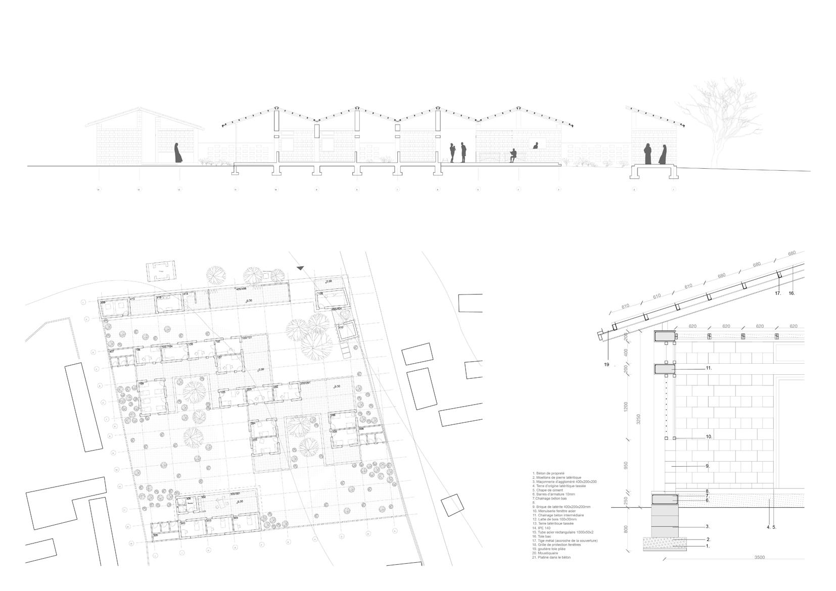 The CSCOM hosts a clinic, a maternity ward and housing for caregivers The context needs the project to adat to very different standards we are used to in western countries building industry, mostly regarding materials, social context, building technics and climate.