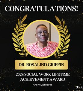 Dr. Rosalind Griffin ’61 was recently selected by the National Association of Social Workers Maryland as recipient of its 2024 Social Work Lifetime Achievement Award. The honor recognizes Griffin’s exceptional contributions and dedication to the field of social work.