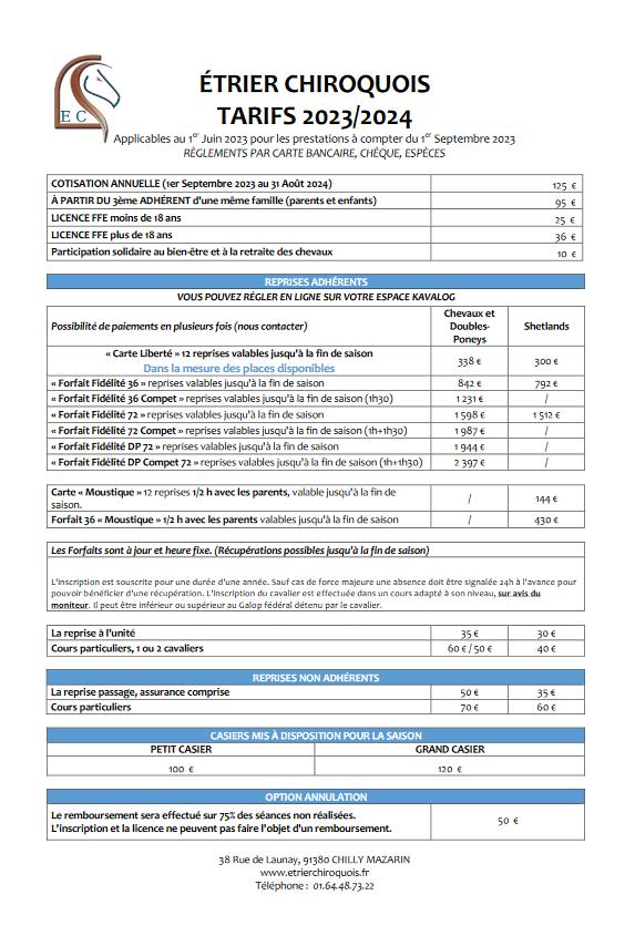 Pour préparer au mieux votre inscription, merci de télécharger et d'imprimer la fiche d'inscription (disponible à la fin de la gazette et sur le site internet wwwetrierchiroquoisfr) et de prendre connaissances des nouveaux tarifs au préalable.