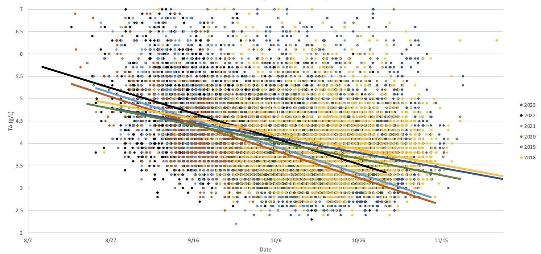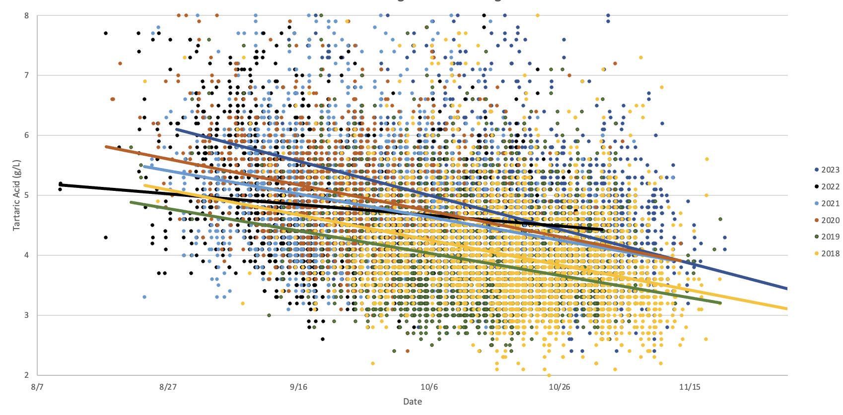 Vintage variations in any of the components that impact acid balance can result in unexpected changes in the final pH and TA of a wine. Monitoring the parameters that contribute to pH and TA is an important preview to how the vintage will affect overall acid balance in the wine.
