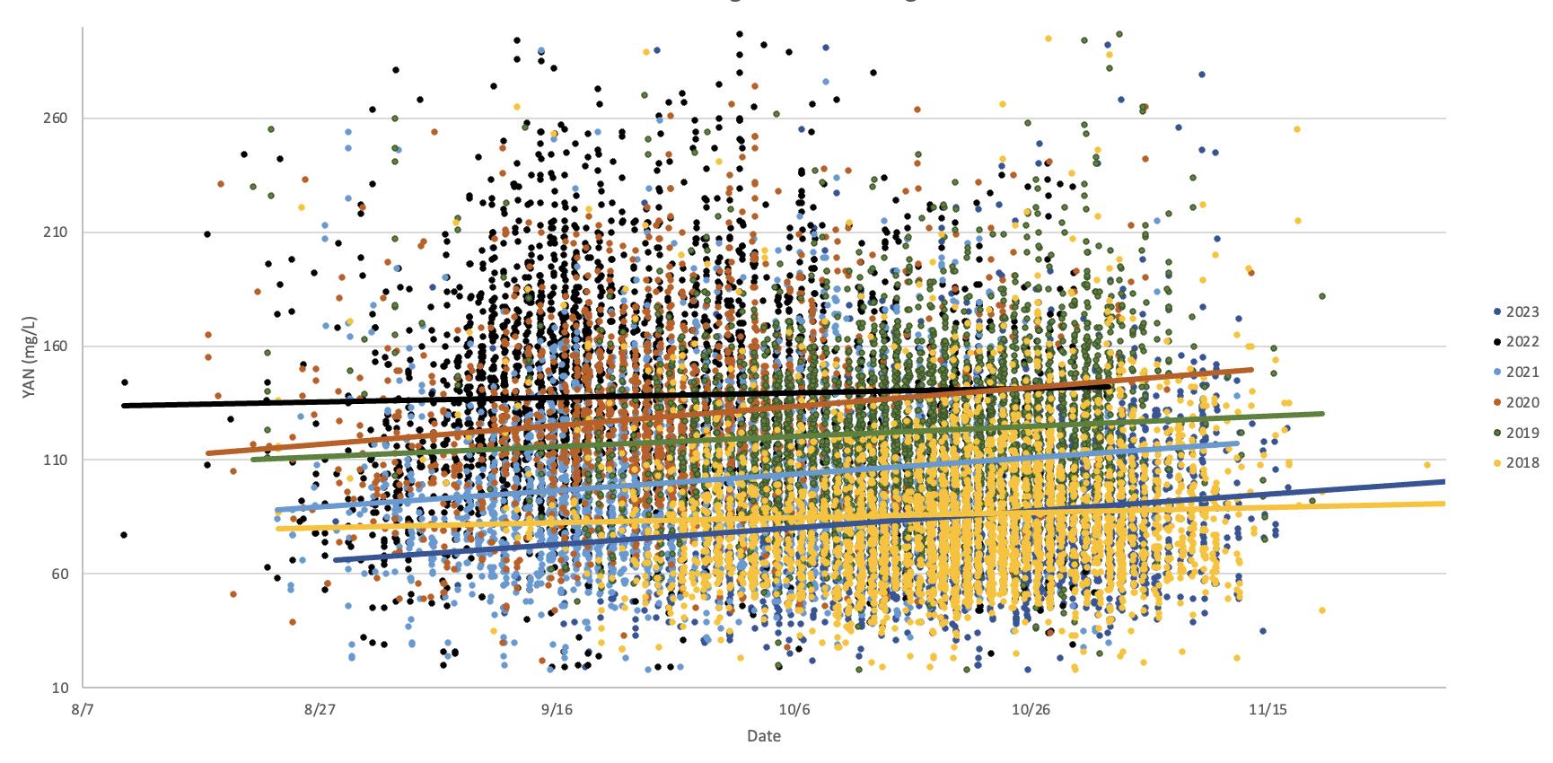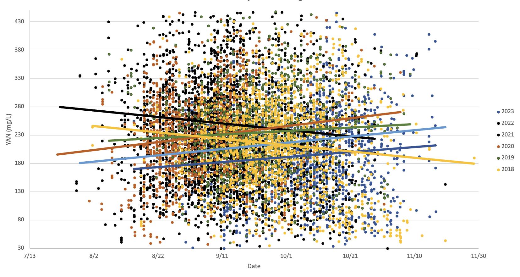 As with other juice chemistry components, YAN values can fluctuate vintage to vintage due to changes