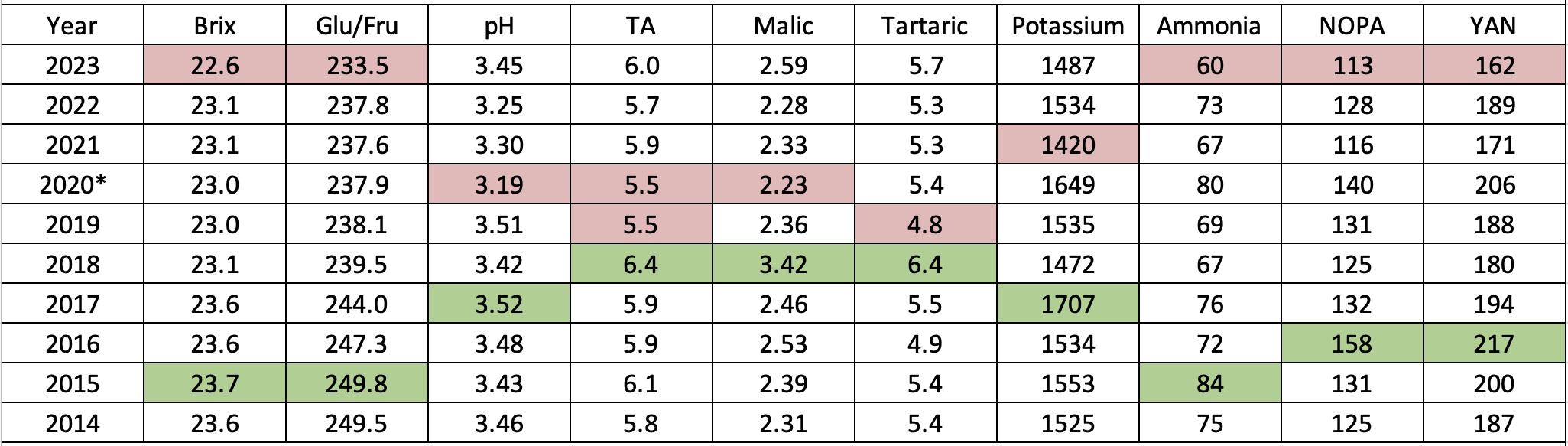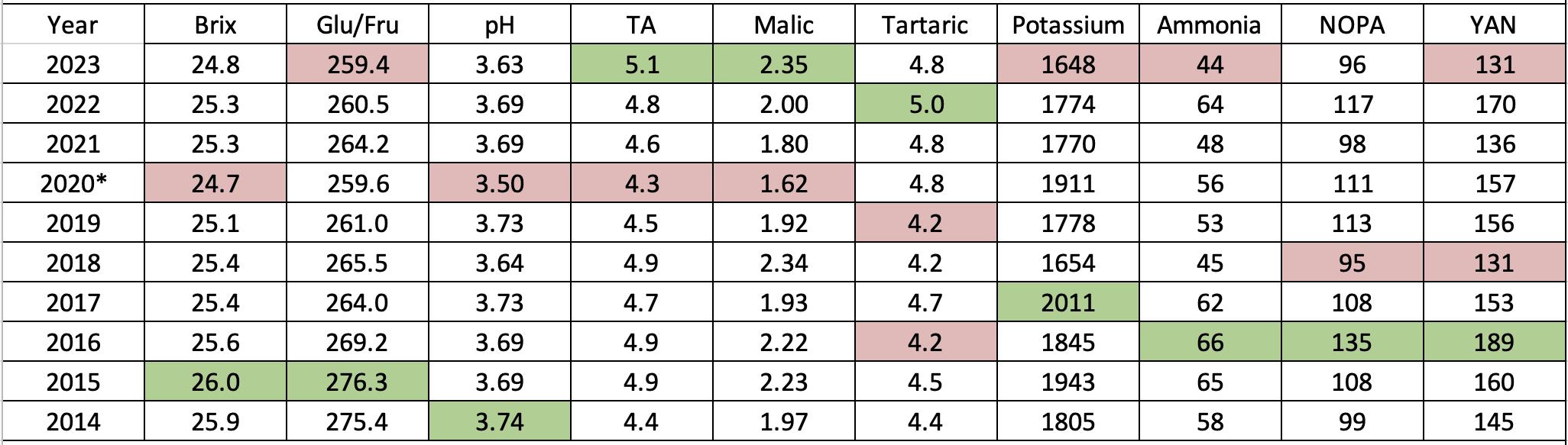 *2020 vintage juice panels do not necessarily reflect typical harvest times due to wildfires